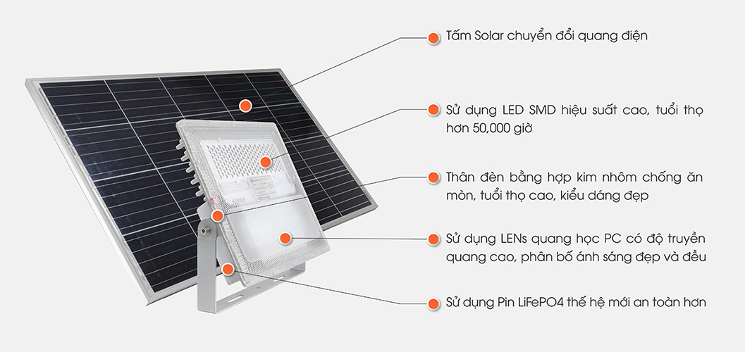 Đèn được thiết kế chống nước, chống bụi, chống gỉ sét, phù hợp với mọi điều kiện thời tiết. Hoạt động ổn định suốt nhiều năm.